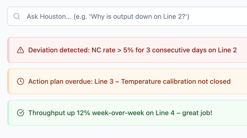 Improvement becomes part of the daily rhythm. Data flows automatically from operations, alerts trigger when thresholds are crossed, and teams act on issues in real-time.